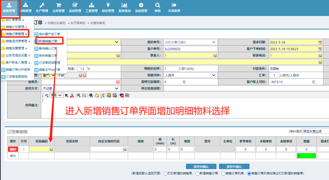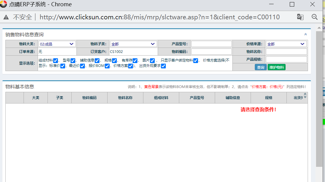 点晴模切ERP-为什么下销售单时查询不到物料的原因详解