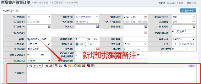 点晴模切ERP-销售订单审核时在合同备注进行添加或修改内容后,审核确认后会消失?