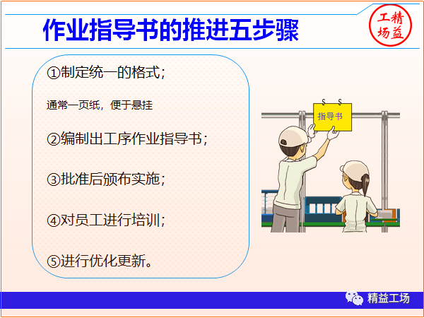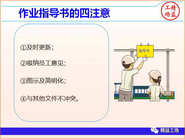 导读 福特说,标准化是你现在能想到的最佳境界。这句话的意思是说,要将当前的最佳作业方式编制成标准,供人们作业依循,从而大幅提升作业效率。 这句话有一个核心,如何才能编制出最佳的作业标准?如果标准都有问题,不仅不能提升效率,可能还会有负面作用。因此,作业指导书不能仅仅追求“有”,而应追求“最优”。