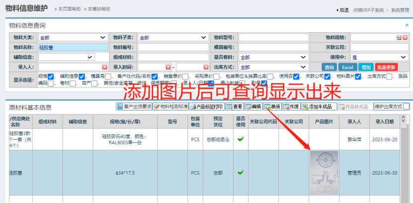 点晴模切ERP-基础资料如何上传成品或原材料图片