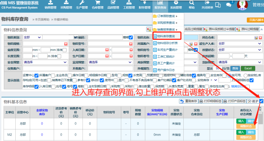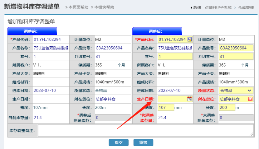 点晴模切ERP-在库调整-物料生产日期为空