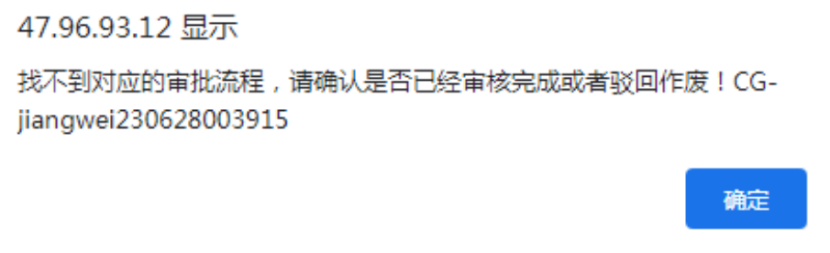 点晴模切ERP-审核单据时弹出提示:找不到对应的审批流程,请确认是否已经审核完成或者驳回作废