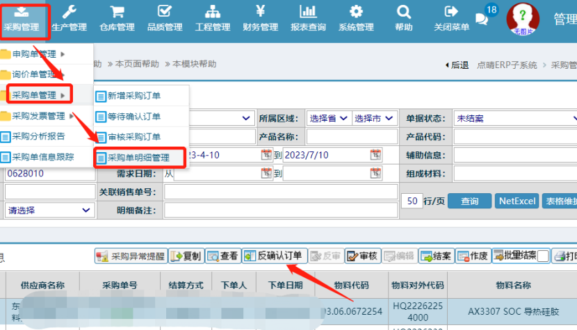 :点晴ERP-审核单据时弹出提示:找不到对应的审批流程,请确认是否已经审核完成或者驳回作废![]() 情况描述:审核单据时弹出提示:找不到对应的审批流程,请确认是否已经审核完成或者驳回作废。 如下图: 原因:该单据的审核流被驳回了,或者该审核流没有生成成功。 解决办法:用制单的账号或管理员的账号进行反确认订单操作,反确认后重新编辑保存生成新的审核流。 操作步骤: 1. 找到该单据,点击反确认订单按钮 如下图