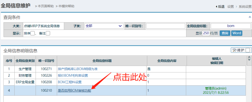 :点晴ERP-BOM如何添加审核人![]() 1. 点击进入 如下图: 2. 输入bom后,点击查询。 如下图: