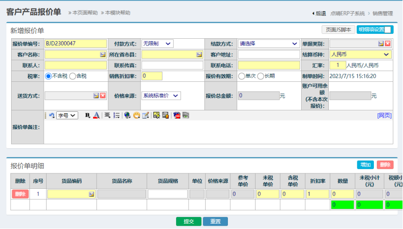 ![]() 补充说明(报价单可用于记录上这款产品的价格变化,所以不允许修改,只通过新增覆盖方法来实现报价变化) 点晴模切ERP更多信息:https://moqie.clicksun.cn,联系电话:4001861886 该文章在 2023/7/15 15:18:09 编辑过 |