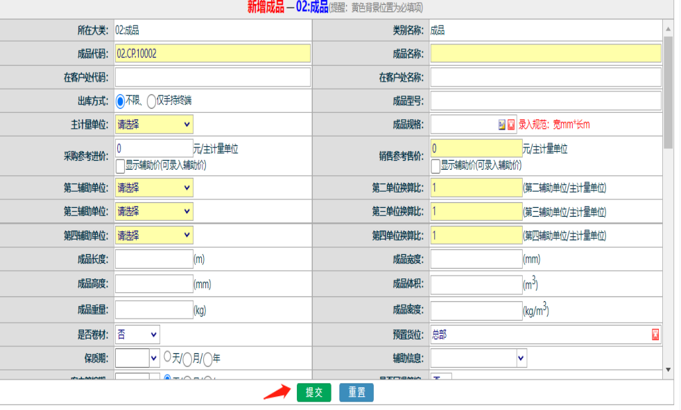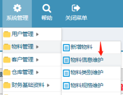 :点晴ERP-新增物料操作流程![]() 1.在”系统管理-->物料管理-->新增物料”,点击进入 2. 首先选择新增物料的类型 3. 然后点击某一类型 4. 然后填写物料信息即可,最后点击提交即可 5.在”系统管理-->物料管理-->物料信息维护”,可查询物料信息 6.在本页面也可修改物料信息,点中某一条信息,然后点击编辑