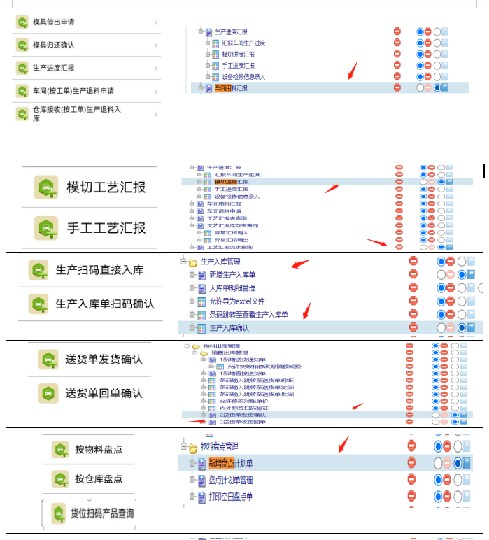 点晴模切ERP-权限赋予对应手持终端业务通APP功能显现清单
