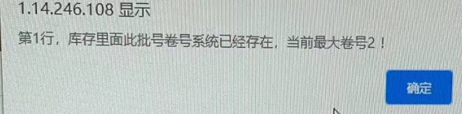 点晴模切ERP-弹出提示:库存里面此批号卷号系统已经存在