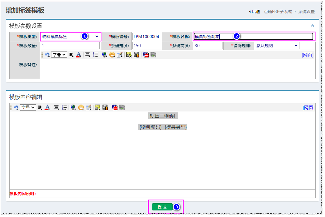 :点晴模切ERP——新增添加打印标签模板副本![]()