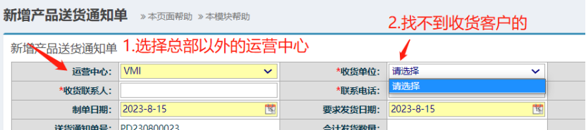 点晴模切ERP-新增送货单时选择其他运营中心找不到收货客户