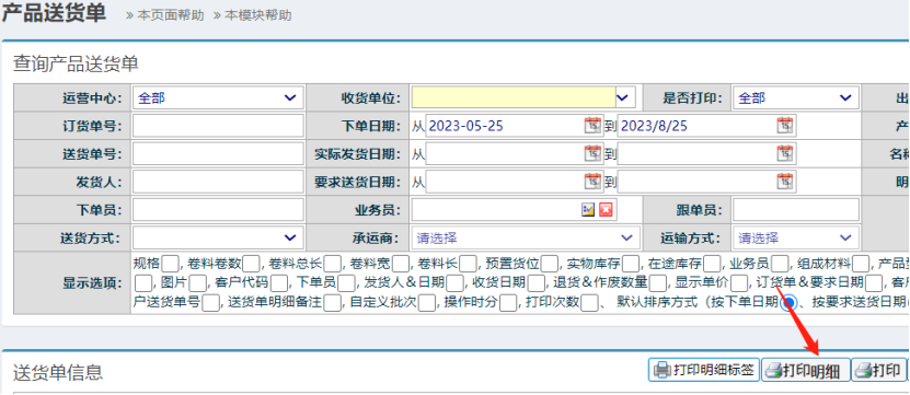 :点晴ERP-勾选明细打印送货单![]() 点击进入 如下图: 点击打印明细 如下图: 勾选明细后,然后点击打印即可 如下图: