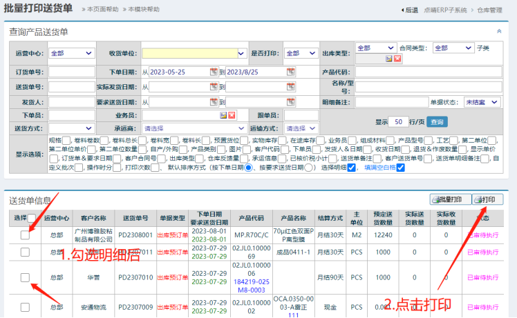 补充说明:勾选不同客户的明细送货单内容进行打印,会提示:送货客户不一致,请重新选择。因为不允许不同客户的内容打印在一起。 ![]()