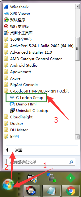:如何重启C-Lodop打印插件服务?![]() 步骤1:找到C-Lodop程序 点击桌面左下角Windows图标,然后点击 "程序", 在程序中找到C-Lodop程序组,然后点击"C-Lodop Setup" 查看一配云打印驱动服务。