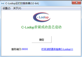 步骤2:重启C-Lodop打印驱动服务 当重启C-Lodop打印驱动服务后,出现下面界面,表示C-Lodop安装成功且已经成功启动。