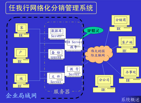 IP精灵技术。解决了互联网上必须使用固定IP的问题。运用该技术,企业的服务器可以放在公司内部,只要该服务器通过ADSL等方式接入internet即可,不用托管和租赁,企业外部用户通过IE浏览器直接输入IP精灵账号,就可以访问企业内部的服务器。从而减少了租赁和托管服务器的费用,使低成本的网上应用成为可能,大大降低了实现基于互联网使用的门槛。
