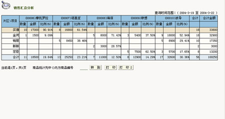 对销售业务的总结和分析,实时为企业决策者提供所有销售业务第一手资料。系统不仅提供反映各分支机构不同时段的销售情况的销售报表,而且能够提供商品、客户、仓库、经手人的销售排行榜和销售统计,根据不同对象(比如销售员、分公司等)的销售情况,分析销售的数量、单价、金额、价税合计、成本金额、毛利、毛利率等信息,并提供排序和穿透式查询。