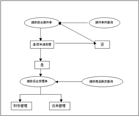 从维修接件到维修受理,及维修过程中发生的换货、维修费用、换货差价、换货利润等业务进行处理。并提供对这些业务结果进行查询。