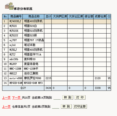 系统能够提供对仓库中具体的某个商品的库存情况的分析,并提颜色尺码明细,将商品颜色尺码明细信息以二维表形式增列显示出来。