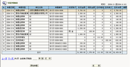 具有汇总表->明细表->原始单据的穿透连查功能;