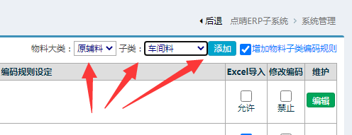 :请问点晴ERP中支持对不同类别的物料单独设置物料编码规则,并自动生成物料代码吗?![]() 可以,点晴ERP系统支持按照物料大类或物料子类分别单独设置自定义物料编码规则,设置方法如下。 以管理员身份进入点晴ERP系统,进入ERP,找到:系统管理-》物料管理-》物料编码设置: 以上界面可以对物料大类进行单独设置代码编码规则。如果需要对物料子类单独设置编码规则,点击勾选“增加物料子类编码规则”: 选择需要单独增加编码规则的子类信息,然后点击“添加”按钮,就会看到增加了一个自定义物料编码规则行: 然后就可以点击选择“自定义”,设置此物料子类的自定义编码规则了。 相关教程: