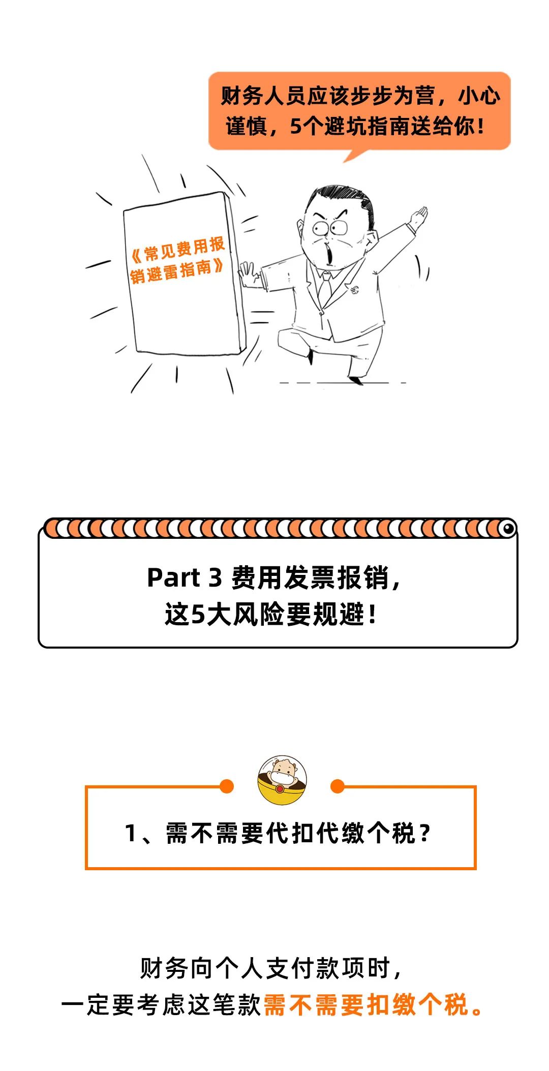 正常情况下,一个公司负责采购的人员就那么几个,如果大家都垫资报销,就有发票抵薪的嫌疑。税务局可能就会稽查公司这些藏匿在发票后边的工资或福利费、要求补缴个税。企业如果经常报销前期的费用,一是不利于内部管理,二是会计数据的失真,三是会让税局质疑费用的真实性,是不是找票报销的?不仅个人垫资报销有风险,差旅费、餐费、福利费等企业的常见费用报销中也都存在很大风险,财务人员应该步步为营,小心谨慎,5个避坑指南送给你!