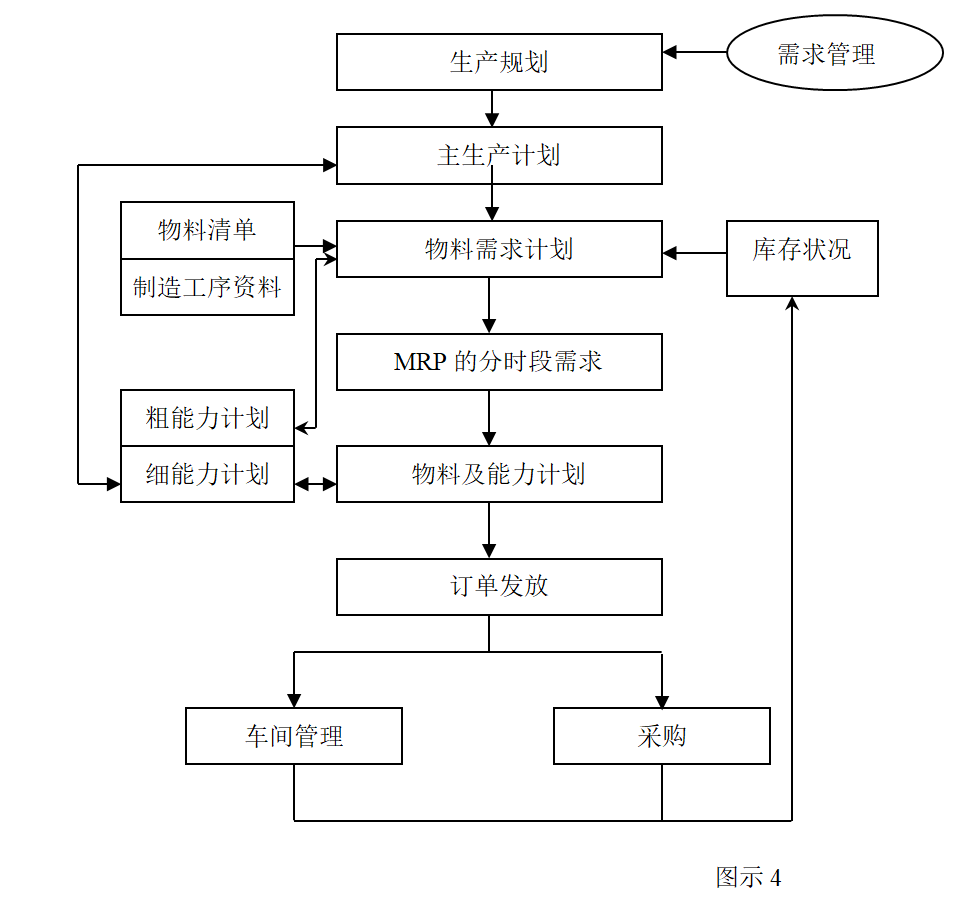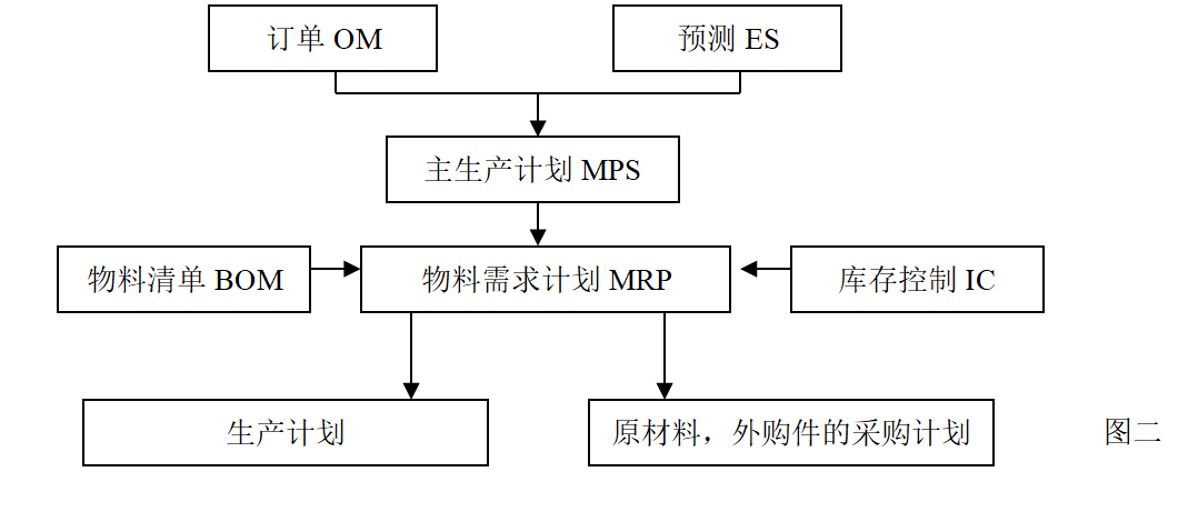 它的基本原理是: 根据需求和预测来确立主生产计划,它提供了物料需求的精确时间与数量,同时,包括生产计划控制的方法。如图示二