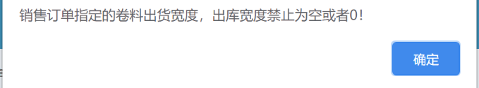 点晴模切ERP-弹出提示:销售订单指定的卷料出货宽度,出库宽度禁止为空或者0!
