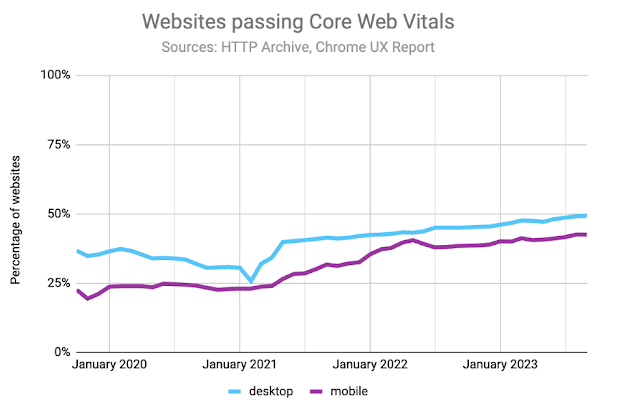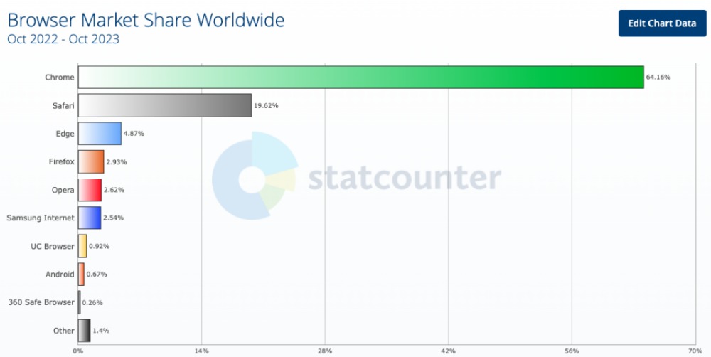图源:statcounter 谷歌在文章中介绍了 CWV 指标改进的背景、优化措施进而提升用户体验,让网页加载变得更快的同时,开发者生态系统也在努力改善网页性能。以下是对原文的编译。 2020 年,谷歌引入了 Web Vitals 基本质量信号,旨在确保更好的用户体验。如今,有 40% 的网站通过了所有的核心网络指标,网页加载的和响应交互都变得更加快速。借此,本文将详细记录这次性能优化旅程以及在浏览器和生态系统中实现这些成就所做的具体工作。 Chrome 对速度的追求 高效快速地提供信息和服务一直是谷歌业务的核心,也是 Chrome 团队的工作动力。长期以来,他们注意到,即使网站在一段时间之内改善了性能,但随着时间的推移,性能会随之下降,即使 Chrome 搜索速度再快,当页面加载缓慢时,用户体验也会受到影响。 既然无法帮助这些网站提高性能,那该如何提高用户体验呢?为此,谷歌搜索团队和 Chrome 团队展开协作,合力解决网页性能、加载等诸多用户体验问题。 定义快速网络 他们检查了数百万个网页之后,给那些快速、用户友好的网页定义了一个公共标准(最初发布在《Web Vitals 背后的科学》),并将规范和数据发布到开放的生态系统获取一些反馈。其次,他们还引入了核心网络指标(CWV),诸如具有突破性指标的最大内容绘制(LCP),进而可以查看用户在某个网页的停留时长。 2021 年 8 月,谷歌更新了搜索排名算法,这里面考虑了是否满足 CWV 所确定的速度和可用性标准等因素。 小改变带来的大提升 在引入 CWV 等指标及调整后,Chrome 的平均页面加载速度快了 166 毫秒。到目前为止,该项目已为用户节省了超过 10000 年的网页等待加载时间,以及超过 12000 年的等待网页响应用户输入时间。而且,网络的速度还在不断提高。在跟踪了符合 CWV 的导航次数改进后,他们得到了最新的数据是,移动端为 64.45%(比原来 64% 高了一点)桌面端 68.39%(原来是 67%)。Chrome 数据团队预测年底的通过率会达到约 69%。
