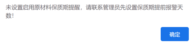 [原创]点晴模切ERP-弹出提示:未设置启用原材料保质期提醒,请联系管理员先设置保质期提前报警天数