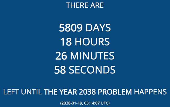 日期调整超过2038年时,会停在2038年1月1日 2038年到底会发生什么?为什么各种设备都无法“逾越”2038年?在网上搜寻2038,你还能发现有人专门设置了倒计时网页。这其中包含了一个更加精确的时间:2038年1月19日 3点14分7秒。而下一秒,你的电子设备将会穿越回到1901年。 著名的“2038问题”,将在此刻爆发。