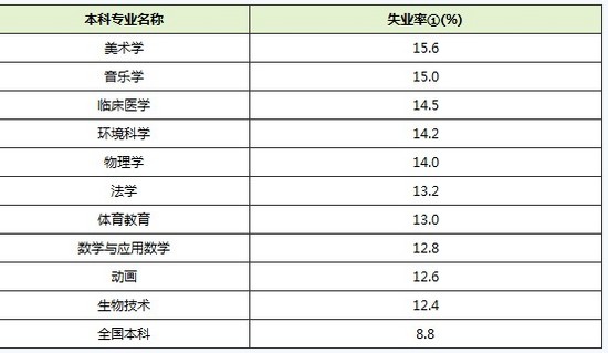 2010本科毕业生失业率最高10大专业