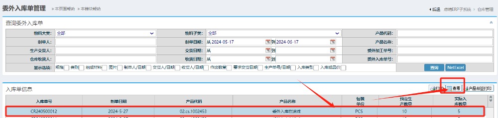 进入界面后-选中对应的单据,点击查看按钮