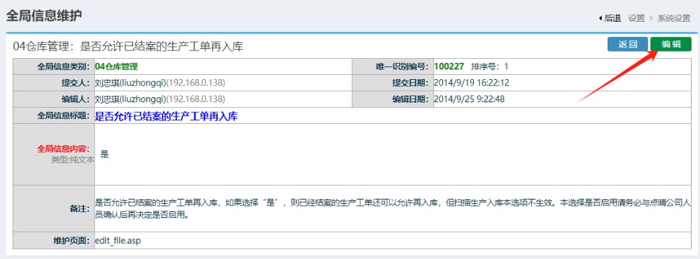 进入界面后,点击编辑按钮,将内容改成是,点击“更新确认”即可,如下图所示: