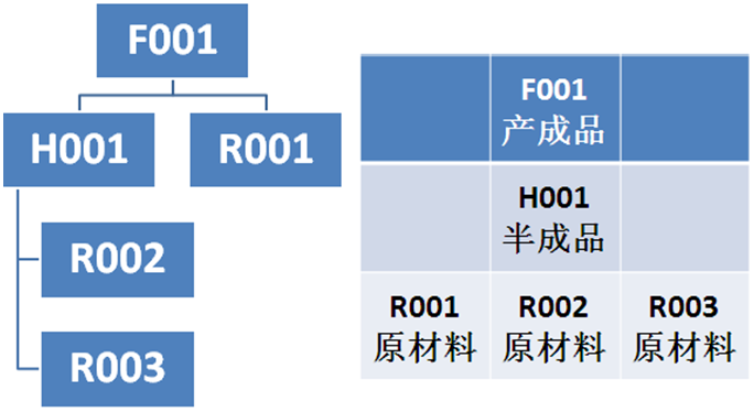 Ø 可以按照差异的大小,发送警告或错误消息。 Ø 当产生循环bom时,系统可以自动处理。举例说明循环bom,如下图所示: