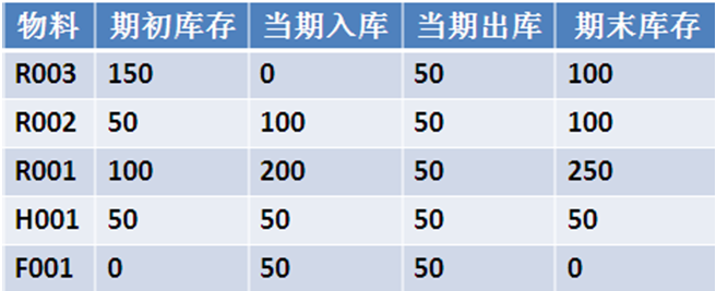 在这里我们可以了解某物料在期间内的情况,包括以下四种数据: Ø 期初库存:月初的库存量; Ø 收据:期间内入库的物料; Ø 消耗:包括对生产订单的消耗等日常物料消耗; Ø 期末库存:期末物料的库存量。