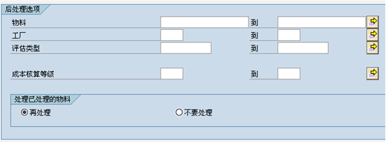 系统允许按物料、工厂、评估类型进行选择需要计算的物料