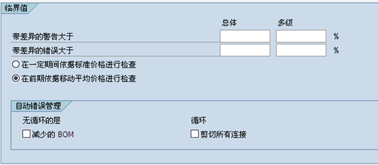 Ø 如果已经执行过这一步,建议选择“不要处理”来跳过部分没有价格变动的物料; Ø 当单层差异导致物料实际成本改变过大时,可以定义警告及报错信息,及时了解价格变动幅度较大的物料; Ø 计算价格的基准可以是物料的标准价格,也可以是物料月末的移动平均价。