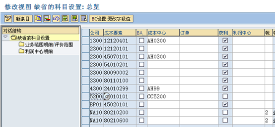 通过值流监视器,可以查看物料的差异分摊情况,如果出现金额较大的未分配为分摊,则可以使用CKM3寻找差异原因,并加以修正。 当确认结算没有问题后,完成第七步凭证过账的操作,然后使用F-02对差异科目的尾差进行结转。使用报表工具查看后台配置的差异科目。结算完毕后,这些科目可能会存在小额差异,必须将这部分表外差异科目的余额结转至表内,建议可以直接结转至当期损益。会计分录如下: 借\贷:待摊费用-成本递延差异或相应损益科目 贷\借:手工差异转出 其他消费重估差异(COC) 同时,如果存在成本中心领料,则可能会有差异过账至成本中心,而此时的生产性成本中心已经通过作业价格重估清零,所以需要手工将这部分差异转出,并在下月冲回,或者直接进入当期损益。(重估归零了,通过作业价格分摊分配到生产订单,不要重新调整) 借:待摊费用-成本递延差异或相应损益科目 贷:成本中心余额转出 然后,将物料分类帐计算得出的实际成本传输至获利能力分析中,事务代码:KE27