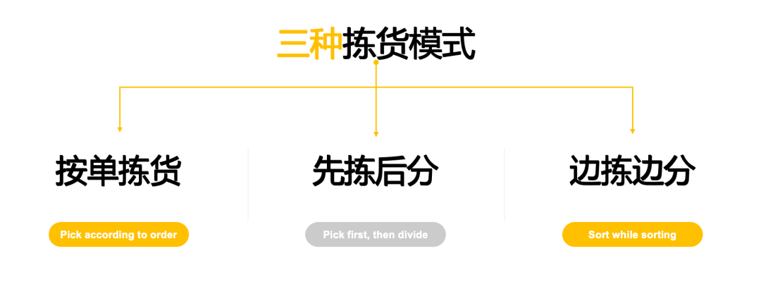 拣货模式没有好坏之分,不同的仓库情况适合不同的拣货方式。 1、按单拣货 对拣货通道宽度要求低,适用于大数量的订单拣货处理;但是需要人工分单,商品涉及sku多,件均高时,效率会比较低。 2、先拣后分 订单数量庞大时,可以显著提高工作效率,缩短拣货时的行走搬运距离,增加单位时间的拣货数量;但是这种拣货模式需要二次分播,同时也需要有完善的商品编码才可以采用。 3、边拣边分 拣货正确率高,复杂订单拣货效率相比于按单拣货效率有非常大的提升;但是这种拣货模式对拣货通道有要求,需要能进入拣货车。