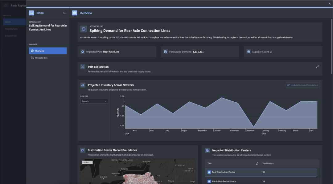 4. 智能客服与用户体验改进 影响: AI 改进了 ERP 系统的用户交互方式,使其更加智能化、人性化。智能助手和聊天机器人可以帮助用户更便捷地操作 ERP 系统,快速找到需要的信息或完成任务。 改造方式: 通过自然语言处理(NLP)和智能虚拟助手(如聊天机器人),ERP 用户可以通过语音或文本命令与系统互动,极大简化了操作流程。AI 可以帮助员工快速解决问题,处理常见的系统查询,甚至根据员工习惯进行个性化定制。 示例: ERP 系统中嵌入智能助手,能够帮助用户通过语音或文本输入查询库存状态、生成报表或跟踪订单流程。 示例:利用AI优化汽车零部件库存管理,应对召回挑战。该应用程序会向原始设备制造商(OEM)发出警报,提示分销中心的短缺情况,并预测需求变化,确保做好准备并提高效率。