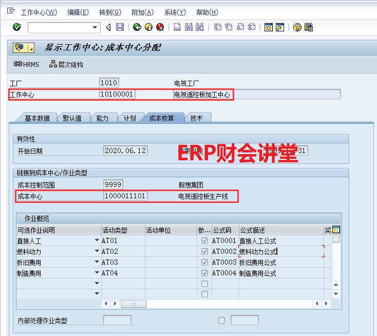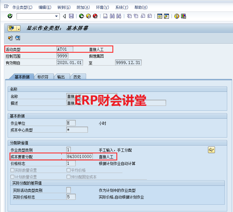 作业类型(Activity type),也叫活动类型,是成本会计模块的重要概念,是学习SAP成本核算必须掌握的基本概念。从生产的角度,车间(工作中心)作为生产性的组织单元,提供产品的加工服务,这种服务可以细分人工工时、机械工时等,在SAP中就称为作业类型(Activity type)。从成本的角度,既然是服务,那就有价格,这就是作业类型的单价,也叫工费率。这就好像去理发店剪头发,师傅为我们服务,按小时收费。一般情况下,我们将车间的加工服务分为直接人工、燃料动力、折旧费用、制造费用四大作业(SAP中最多可以定义六个作业类型)。那是否可以将车间的服务定义为“加工服务”一个作业类型呢?当然可以的,但是这样就无法细分产品的加工成本了。例如产品的成本是100.00,其中直接材料为80.00,那剩余的20.00就是加工成本。如果定义4个作业类型,就可以将加工成本细分为直接人工5.00、折旧费用5.00、燃料动力5.00、制造费用5.00。因此,定义作业类型时,不能光从生产的角度出发,也需要从成本的角度去考虑。在PP模块,车间(工作中心)与成本中心对应(下图)。通过成本中心,归集车间发生的各项费用明细,如人工工资、折旧费、办公费、修理费、劳保费、辅料消耗、废品损失等。车间虽然发生成本,但都是为生产服务的,其成本应该由产品承担。在CO模块,作业类型与次级成本要素关联(下图)。生产订单报工时,需要输入订单消耗的作业类型数量。系统根据作业类型的单价,自动从成本中心结转相应的成本到订单。这样,通过作业类型实现成本从车间(成本中心)到订单的分配。总结一下,车间(工作中心)提供加工服务(作业类型),发生的各种费用通过成本中心归集。生产订单报工时输入消耗的作业量,结合KP26维护的作业价格,系统自动结转作业成本到生产订单(从成本中心)。