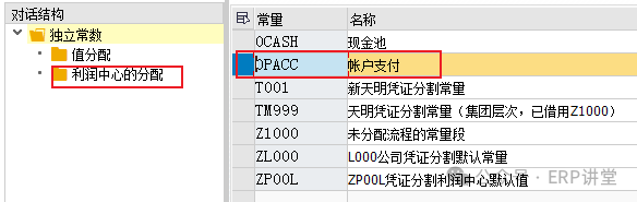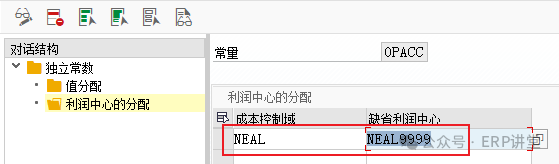 选中常量,双击“利润中心的分配”