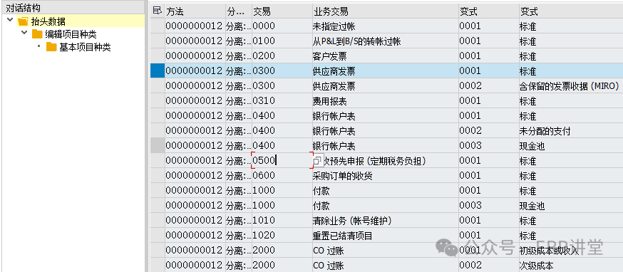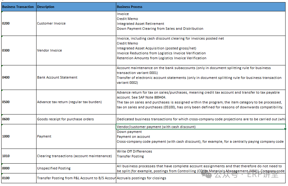 一般使用系统交付的标志配置,如果有新建的凭证类型,才需要维护; 我们在凭证录入的时候,会有不同的凭证类型,比如录入供应商发票KR,支付供应商货款KZ等等,可以简单理解成Business Transaction就是对应到了实际操作中的某一项或某一类业务。同样,这也是系统预定义好了,我们不能去自定义。