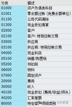 至少要将会计科目分配到如下行项目类别: 资产负债类会计科目:维护 01000-资产负债表科目 银行存款类科目:维护04000-现金科目 费用类科目:维护20000-费用 收入类科目:维护30000收入 其他类型的会计科目,系统已经自定义了,可以通过表T8G16查看。