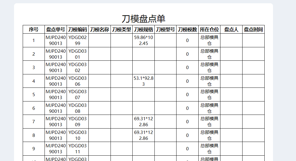 :点晴ERP-模具盘点打印盘点单-操作流程![]() 点击进入 如下图: