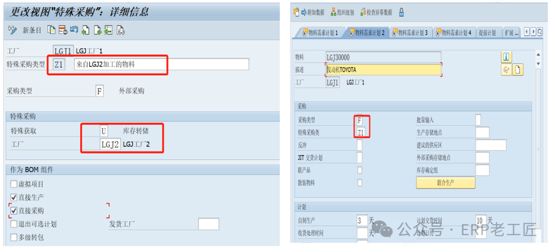 方案一:单一公司代码下的成本还原: SAP系统中,激活实际成本构成本,按实际(成本结构)=标准(成本结构)+差异(成本结构),可实现标准成本结构VS实际成本结构,即实现成本还原: 1.只要激活物料账的实际成本结构标识,并释放标准成本,就可以实现按成本结构的标准VS实际对比分析,CKM3N标准功能,如左图所示; 2.实际成本结构=标准结构+差异,也就是说,差异是按结构的。 3.同一个工厂的,可以用标准功能实现,跨工厂的成本,也可以采用特别采购类型实现跨工厂的成本获取 跨工厂成本评估采用配置特别采购类型,并将此类型分配到物料主数据实现,如下图: