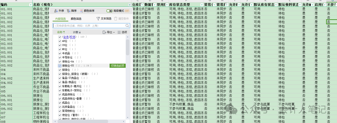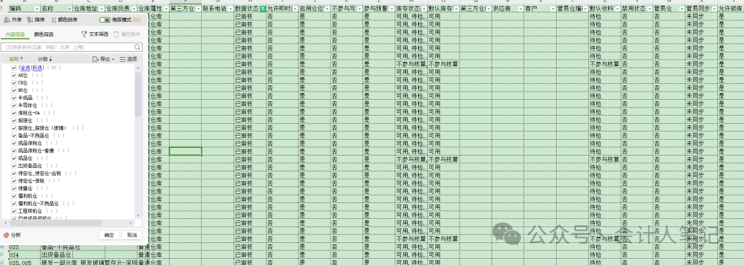 初入成本会计领域,你是否感到既兴奋又有些迷茫?别担心,让我们从看懂仓库开始,一步步揭开成本会计的神秘面纱。 今天,我们就来聊聊新手如何开展成本会计工作,特别是如何“看仓库”。 一、仓库的重要性在成本会计的世界里,仓库不仅是存放物品的场所,更是成本数据的源头。了解仓库的设置、管理情况,以及各类仓库的用途,是成本会计工作的基础。 二、仓库设置与管理1. 仓库是否存在 首先,我们需要了解公司是否有仓库,以及仓库的类型和数量。常见的仓库类型包括材料仓、成品仓、半成品仓等。看了下我这里剔除禁用掉的,截止目前仓位还有59个。查到我刚入职时HM的仓位多达169个,经常性盘点找不到负责人的情况,漏盘点的情况不要太多。