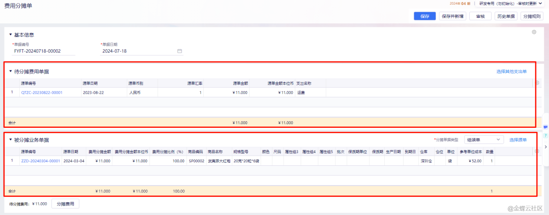 [点晴模切ERP]金蝶云星辰费用分摊单功能说明与应用场景