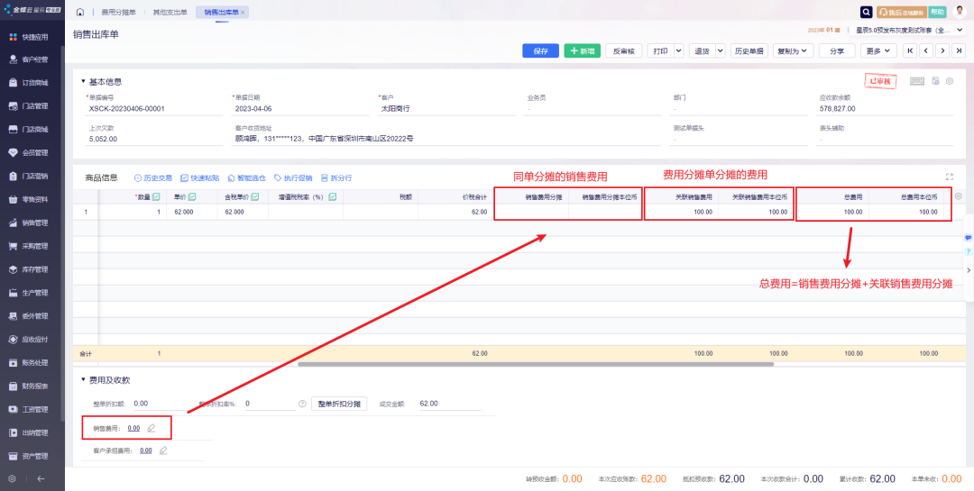 注意:旗舰版的采购入库单,销售发票,销售出库单均暂不支持同单费用 在销售类报表中,“计算毛利”公式中,“销售总费用”包括了同单分配的销售费用和关联销售费用