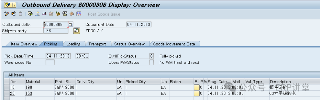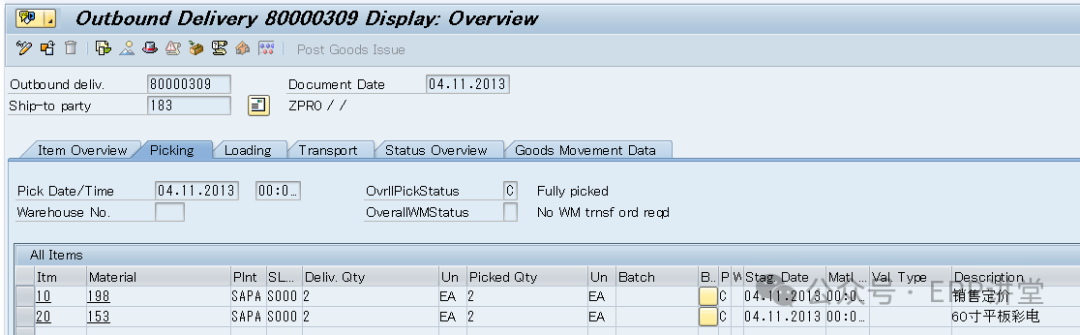 交货单上有2个明细,物料不同,